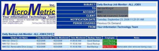This notification is sent daily only to clients whose Maintenance Agreement includes Daily Backup Monitoring
