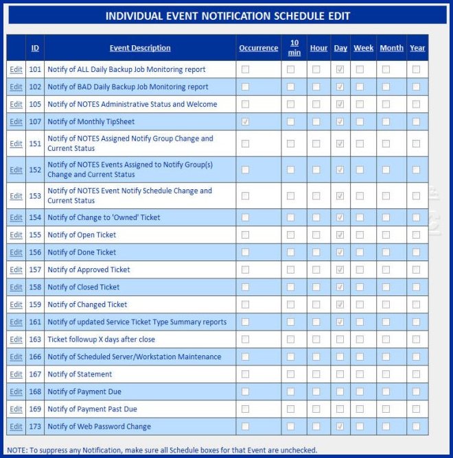 NOTES is an opt-in system, that allows each user to not only select the Events they want to be notified about, such as all work on your computer, but also how frequently you want the Notifications to be sent.